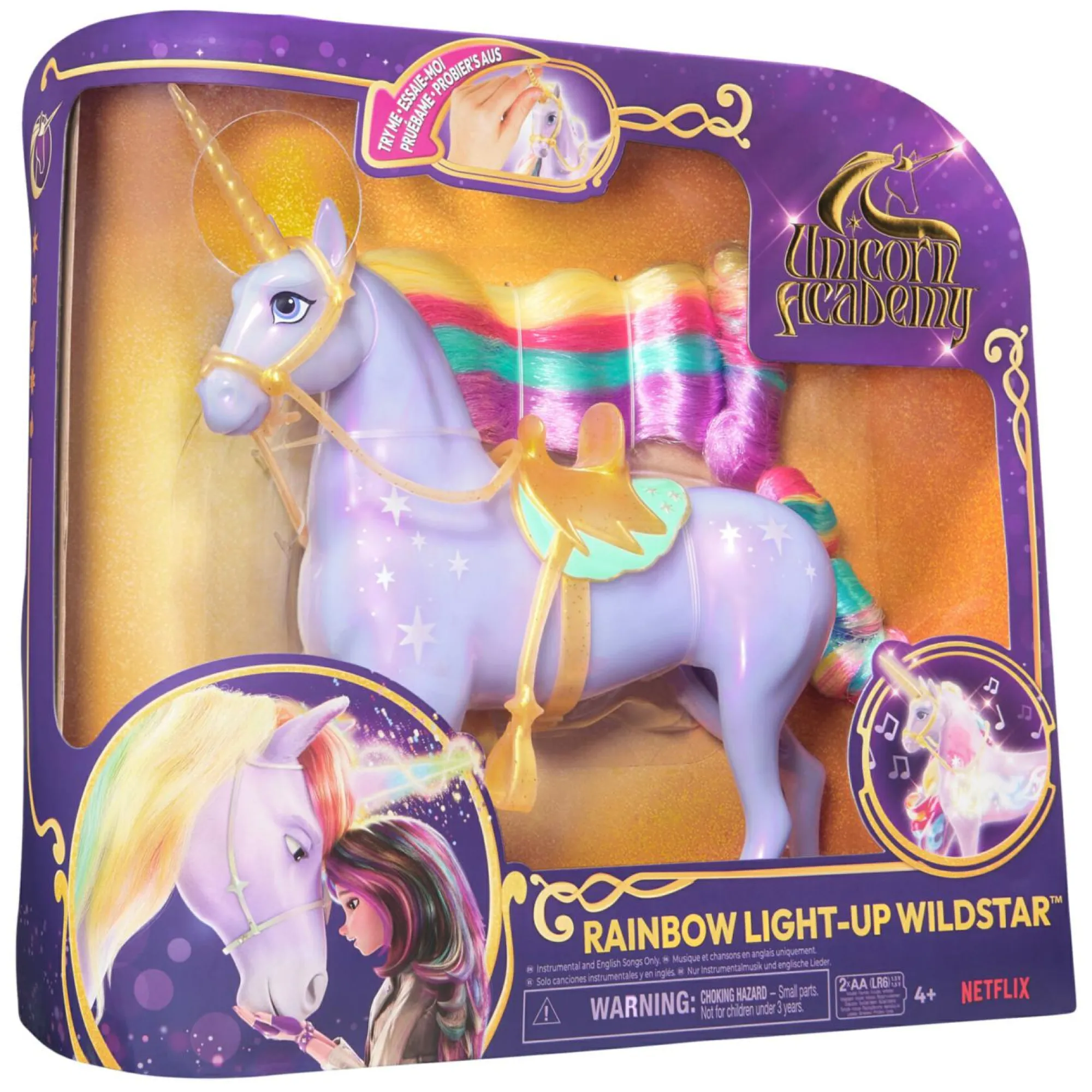 Reagisce al tatto con luci magiche e suoni da unicorno (canzoni in inglese, francese e spagnolo).