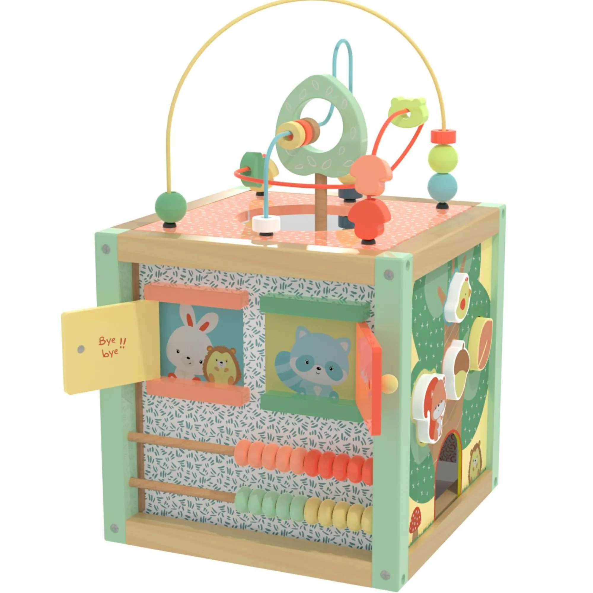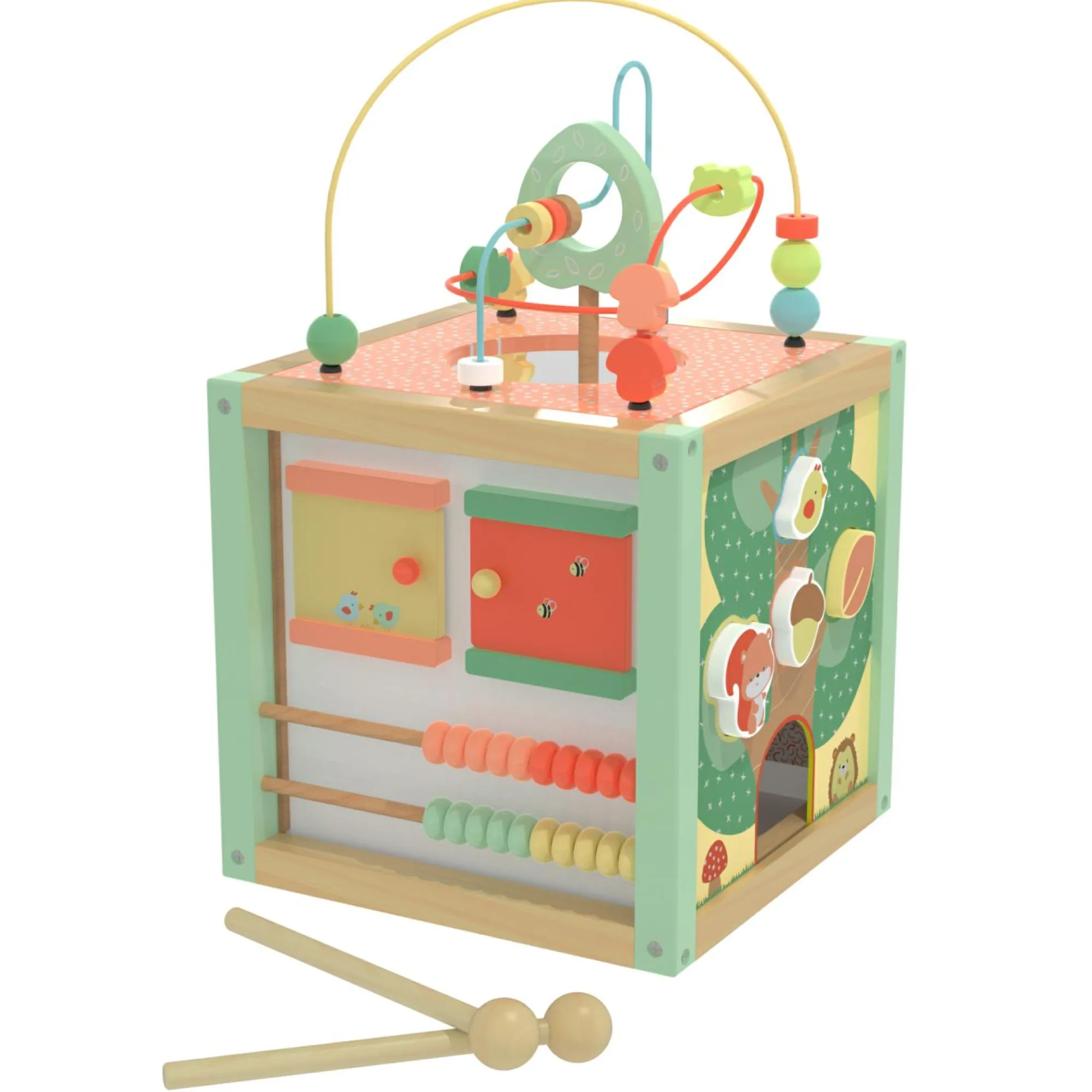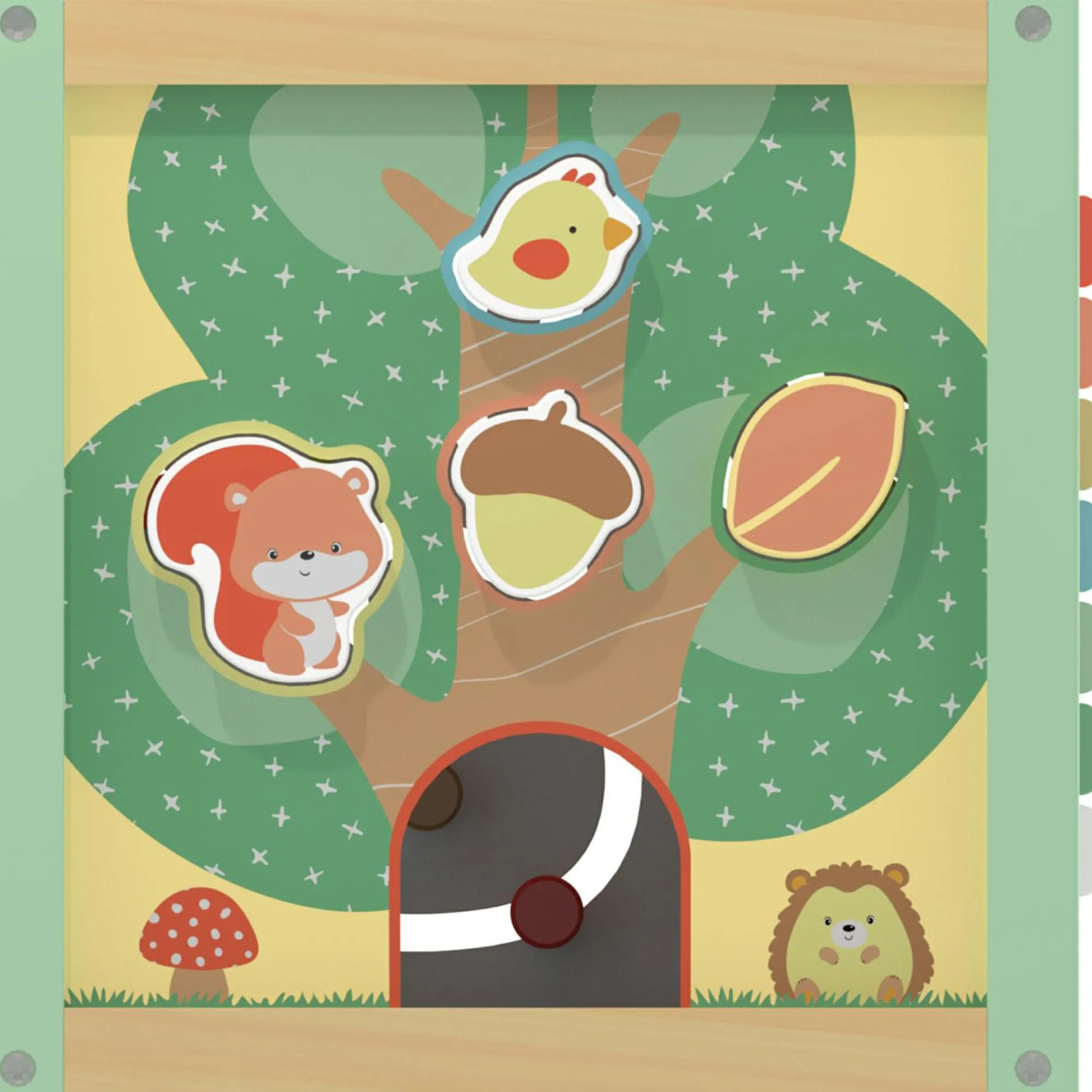 Pallottoliere e Finestrelle: impara a contare le palline e scopri gli animali. Albero: conosci gli animali del bosco nascosti nell’albero e inserisci le forme nei giusti spazi. Xilofono: scopri la magia della musica con lo xilofono a 7 tasti.