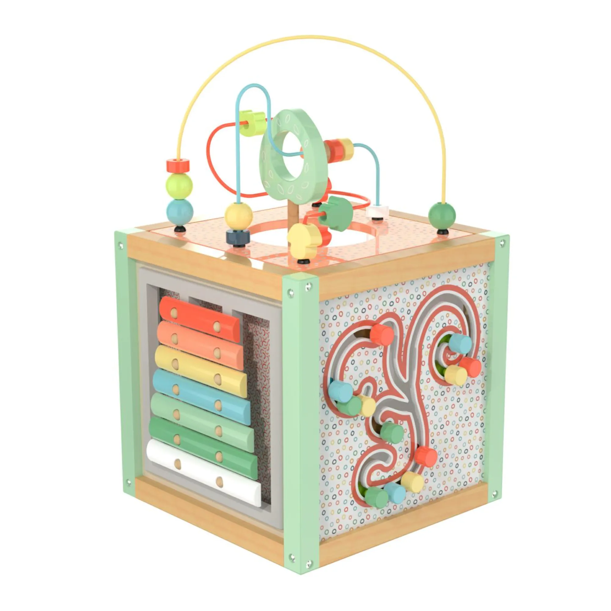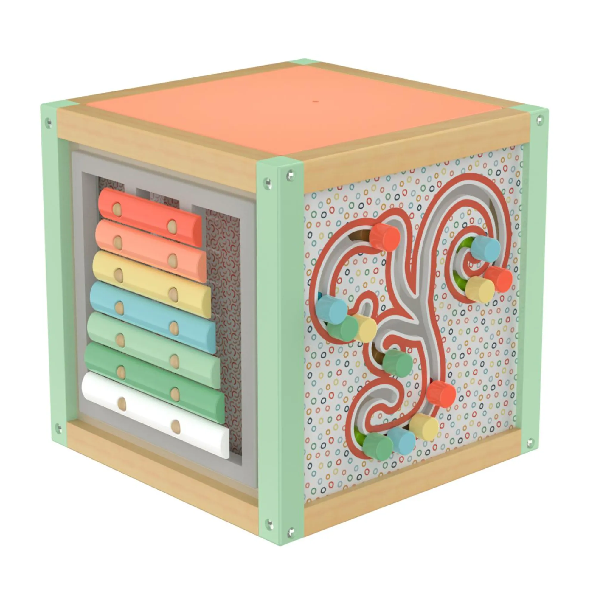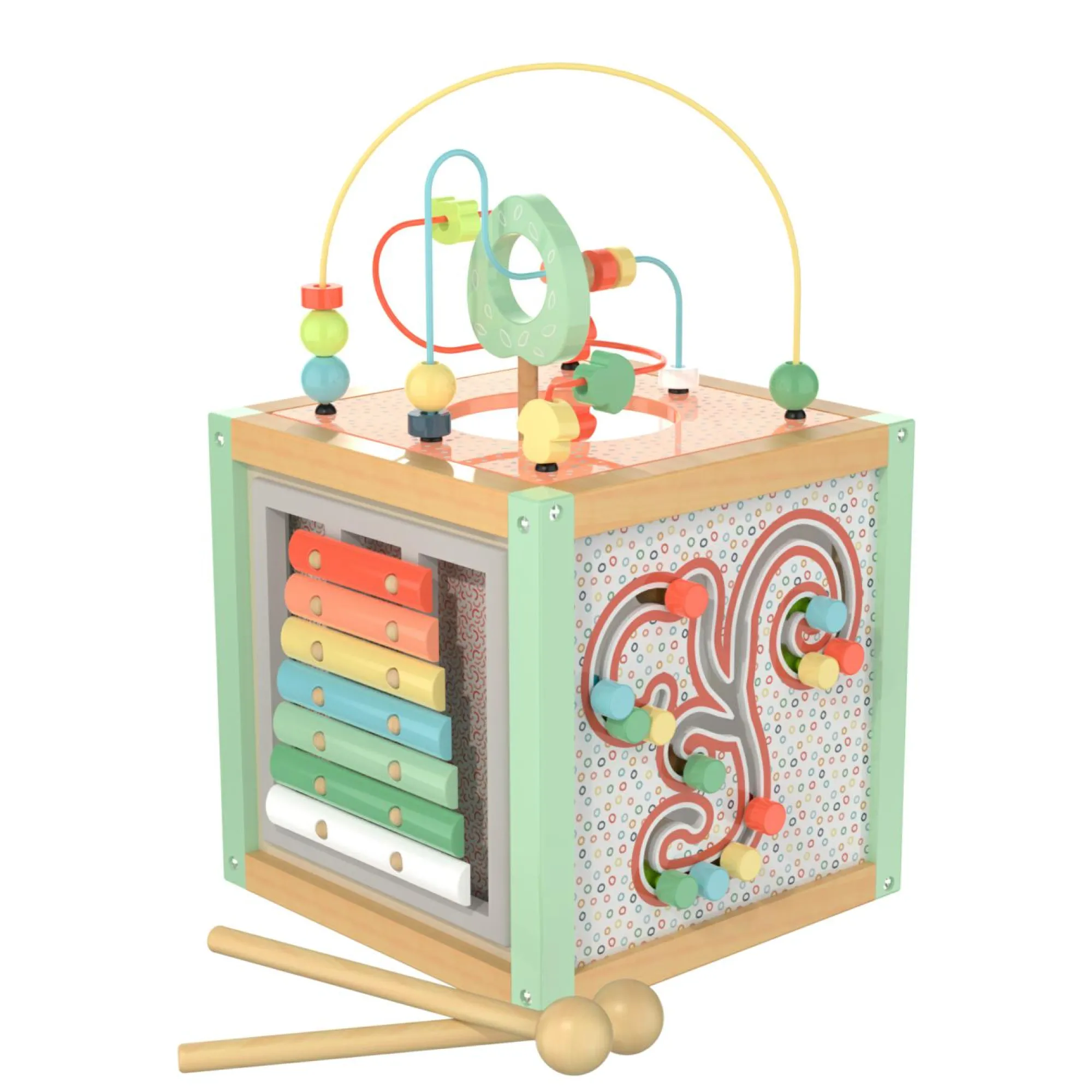 Pallottoliere e Finestrelle: impara a contare le palline e scopri gli animali. Albero: conosci gli animali del bosco nascosti nell’albero e inserisci le forme nei giusti spazi. Xilofono: scopri la magia della musica con lo xilofono a 7 tasti.