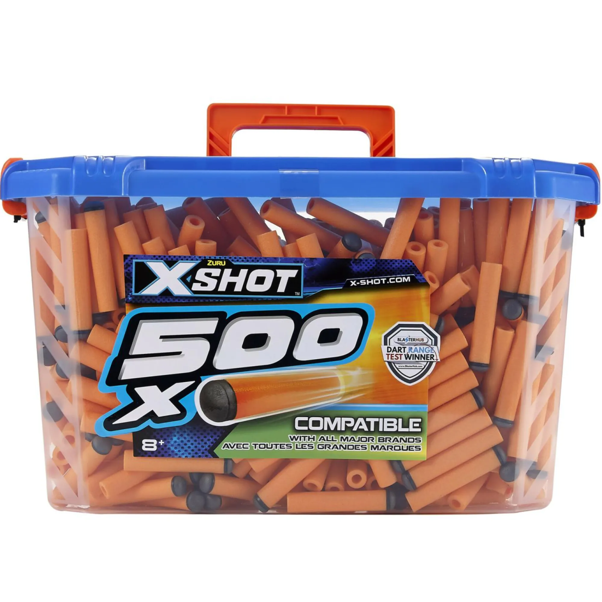 Non perdere mai l’azione con questa pratica scatola di ricarica da 500 dardi! I dardi XSHOT sono compatibili con la maggior parte dei marchi leader!